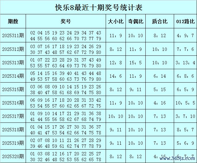 福彩风物8第2025320期开奖回来:01 03 08 12 16 17 20 22 25 27 30 32 46 48 52 53 55 62 65 78,其中奖号大小比开出8:12,奇偶比开出8:12,质合比开出4:16,012路比开出6:7:7。